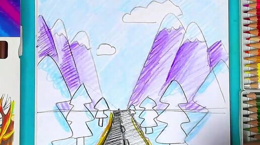 Как нарисовать перспективу - горы, дорога, пейзаж