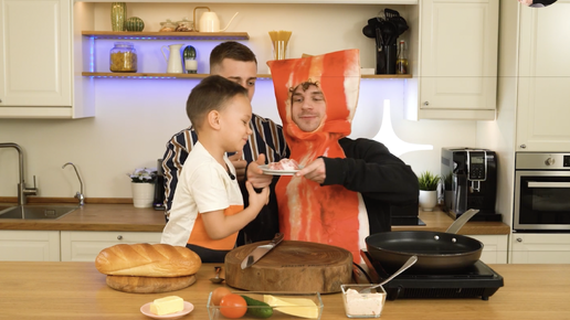Ребёнок на кухне: готовим совсем не детский сэндвич с беконом и сыром