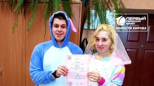 В Лузе пара расписалась в костюмах Стича и Единорожки.