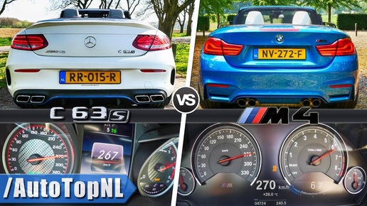 BMW M4 Convertible vs AMG C63 S Convertible 0-270km/h POV & SOUND by AutoTopNL