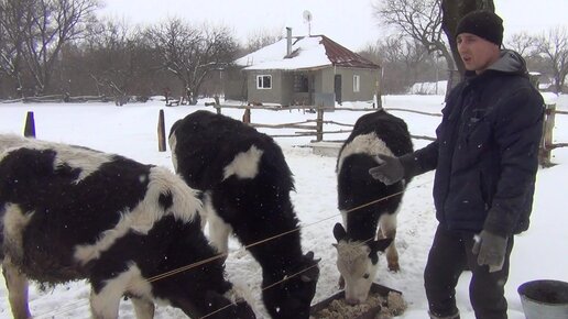 добываем корма для коров из под снега, жизнь в деревне, розыгрыш попонов
