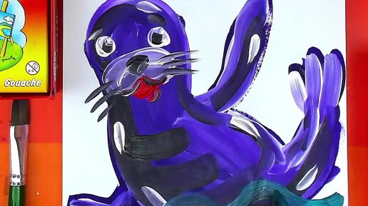 Как нарисовать Морского котика - рисуем красками