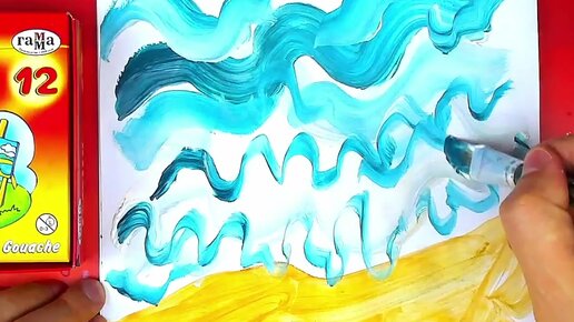 Рисуем МОРЕ и ПЕСОК - пляж на листке