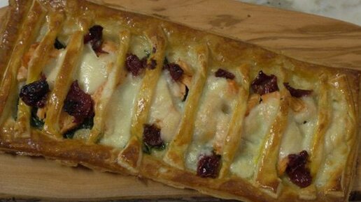 Открытый пирог с рыбой, моцареллой и шпинатом