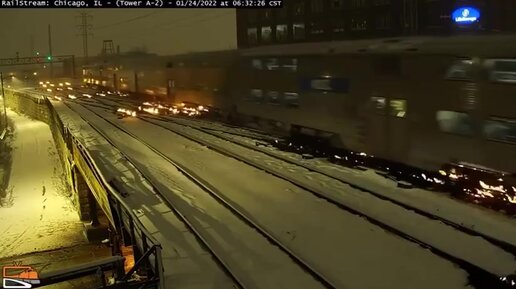 Горящие железные дороги в Чикаго. Таким образом это спасает подвижным части рельс от примерзания