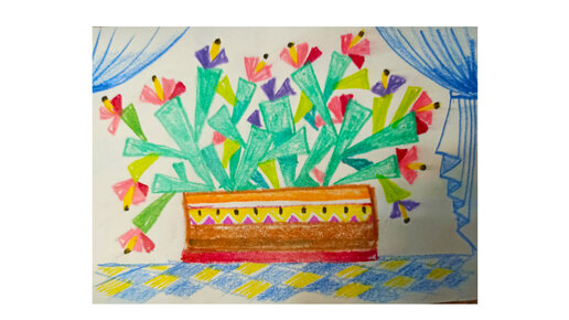 Стилизованный рисунок комнатных цветов пастелью.