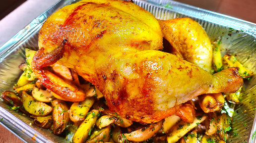 Курица гриль на вертеле с запеченым картофелем в духовке