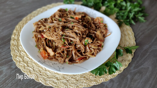 Гречневая лапша с курицей. Соба с курицей и овощами