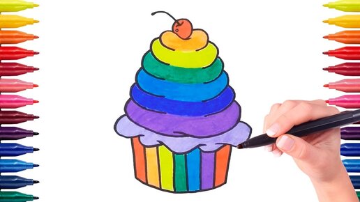 Как нарисовать радужный кекс (капкейк, пирожное)