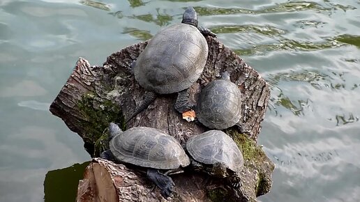 Черепахи в окружении уток и подборка с другими черепахами