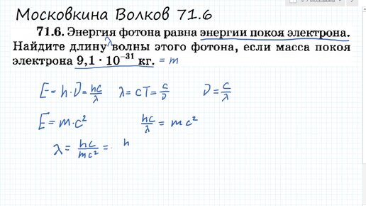 Энергия фотона равна энергии покоя электрона: Московкина 71.6