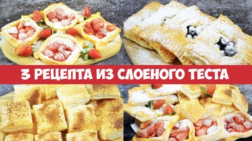 За несколько минут можно приготовить целый стол самый вкусной выпечки из слоеного теста. Сразу 3 рецепта к чаю из слоеного теста