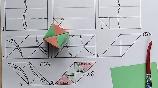 Кубик - коробочка оригами (базовая форма "дверь" ("шкаф"))