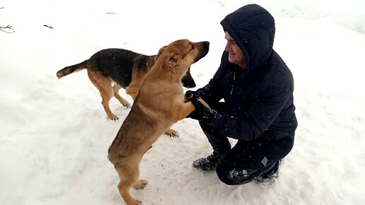 Шельма и Оскар встречают хозяина. От избытка эмоций чуть не подрались