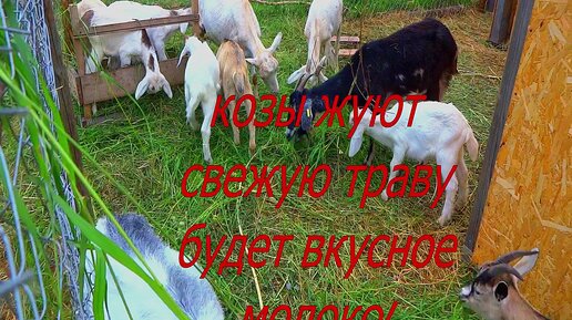 Козы жуют свежую траву