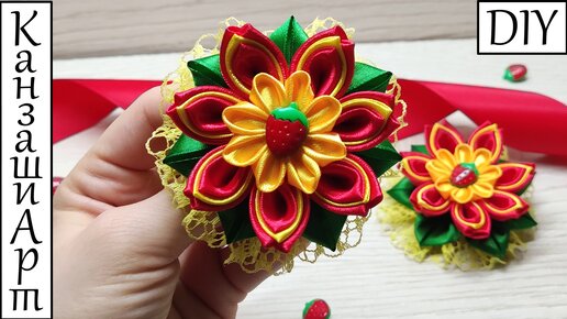 Весенние резинки с клубничками 🎀 Мастер класс Канзаши 🎀