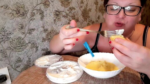 Картошка и селедка, нашла способ ,как сожрать ее вкуснее👍/Юлька меня блюдит,не дает испачкать стол🤣🤣🤣