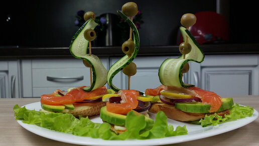 Шаланды, полные форели И авокадо на борту. Лимон, оливки, сыр и зелень Встречайте вкусную еду.