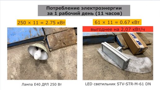 Замена ламп ДРЛ 250 на светодиодное освещение.