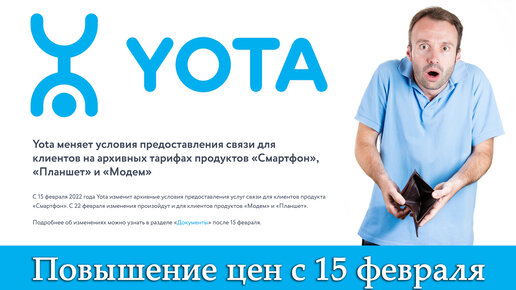 Повышение цен на тарифах YOTA с 15 и 22 февраля 2022 года