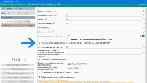 Определение категории помещения при размещении пожарной нагрузки по участкам (Версия 2021-06-01)