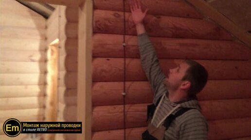 Монтаж Наружной Электропроводки в стиле "Retro" в бревенчатом Деревянном Доме (2018 г.)