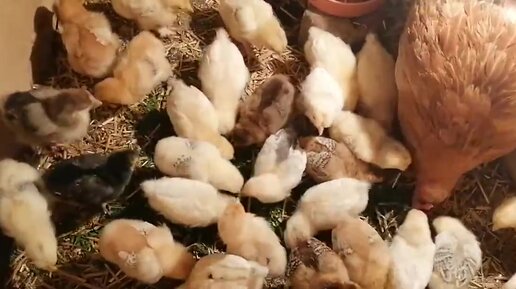 Квочка и цыплята! Цыплятам 9 дней. Кормлю цыплят травой