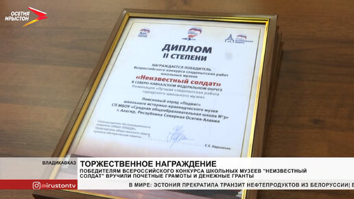 Победителям Всероссийского конкурса школьных музеев «Неизвестный солдат» вручили почётные грамоты и денежные гранты