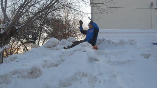 Катание с ледяной горки. Детские забавы в исполнении взрослых