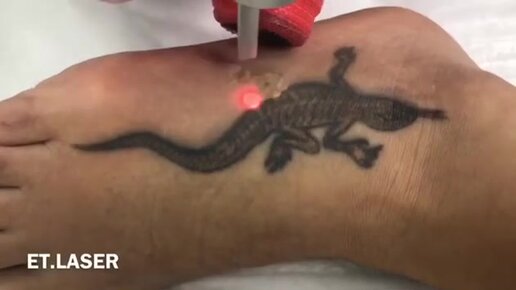 Удаляем татуировку ящерица на стопе за 30 секунд