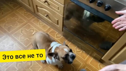 Французский бульдог ругается , мало мясо положили. Смотреть со звуком...