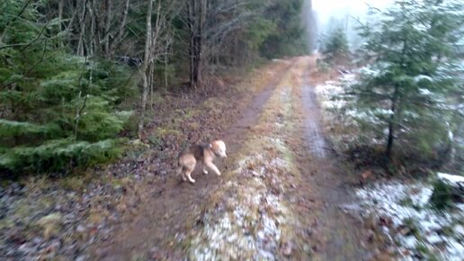 Нора идет по лесной дорожке