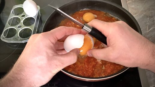 Пока я спала, муж приготовил на завтрак королевское блюдо: яичница "Шакшука". Это самая вкусная яичница, что я пробовала