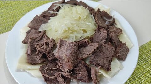 Простой, вкусный и очень сытный обед! Шикарное мясное блюдо! Бешбармак с говядиной!