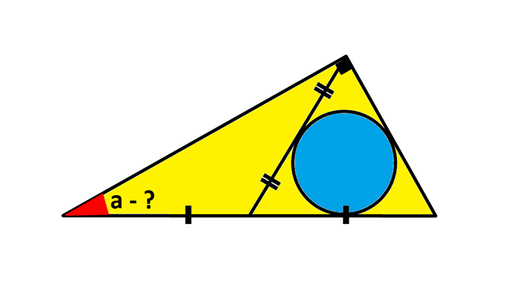 Найти величину угла прямоугольного треугольника в часть которого вписана окружность.
