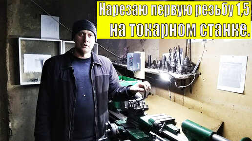 Нарезаю первую резьбу 1,5 на токарном станке.Под гайку с новой гитарой.