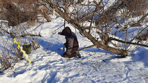 Зимняя рыбалка на малой речке, ловля крупной рыбы.