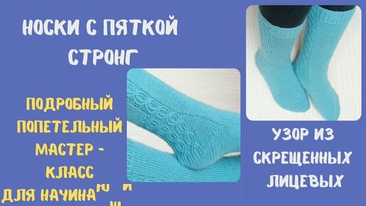 Носки с пяткой Стронг и узором из скрещенных лицевых петель. Подробный мастер класс!