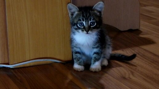 Принесли котенка домой. Котенок висит на шторе. Смешной котенок Ватсон.