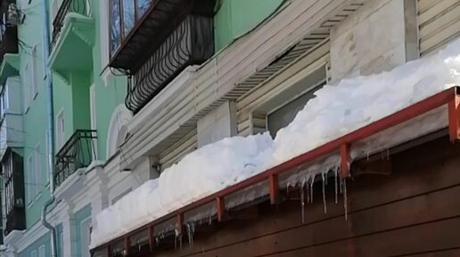 Сосульки и глыбы льда на тротуаре. Прошла по улице, где чистили крыши