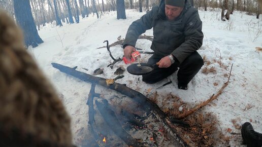 Лес, костер, зима, блины