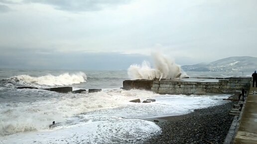 Зимний шторм в Адлере, самое штормовое место!