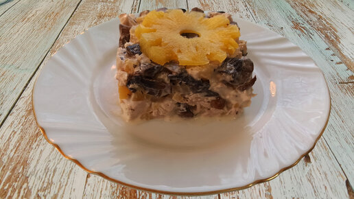Салат с грибами и ананасами на праздничный стол