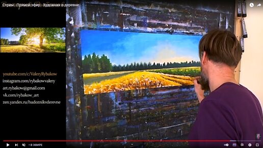 Пишем панорамную солнечную картину акрилом и общаемся в прямом эфире - Художник в деревне