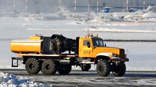 "Адская" машина КрАЗ с двигателем от самолёта. Горячий обдув в аэропорту Внуково