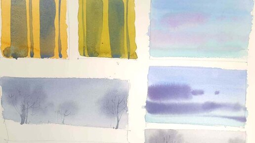 Урок рисования акварелью. Упражнение и выкраски