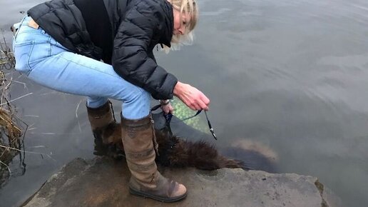 Добрые люди спасли собаку от утопления, прогуливаясь вдоль речки