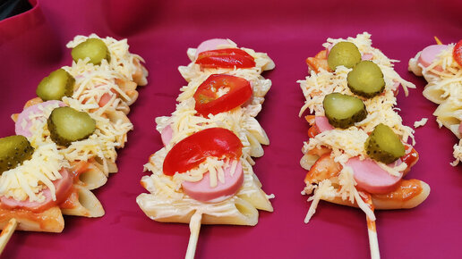 Пицца на шпажках из макарон, быстрый и вкусный перекус: когда макароны (залежались) в холодильнике.