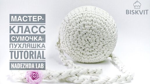 Круглая Сумочка-пухляшка из трикотажной пряжи. Вязание крючком