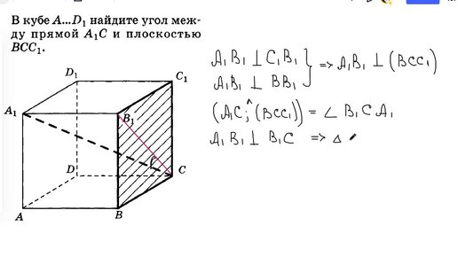 Задача на нахождение угла между прямой и плоскостью | Стереометрия | 10 класс